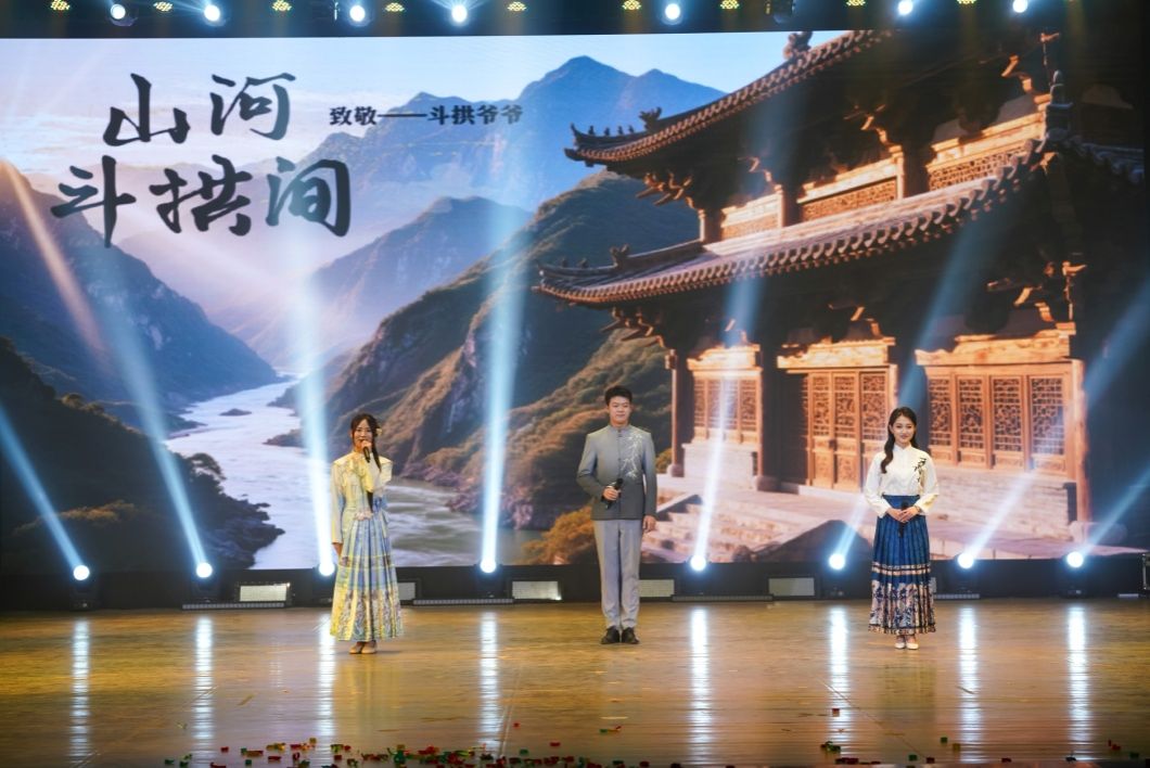 启动仪式后,2022级播音与主持艺术专业汇报演出精彩登场。情景朗诵《血色城防图》以1948年太原解放为背景,再现革命先烈的忠诚与信仰;朗诵节目《课本里的山西》通过文学经典与现实图景的呼应,展现三晋大地的千年风华;小品《互联网体检》以幽默形式反思数字时代对人们工作生活的深刻影响。当晚,斗拱爷爷王永先的登场将晚会推向高潮。王永先老先生向现场观众讲述了他的古建保护与传播经历,并寄希望学子关心关注中国传统文化,传承使命、讲好中国故事。晚会在配音、歌舞等精彩节目中高潮迭起,现场氛围热烈。