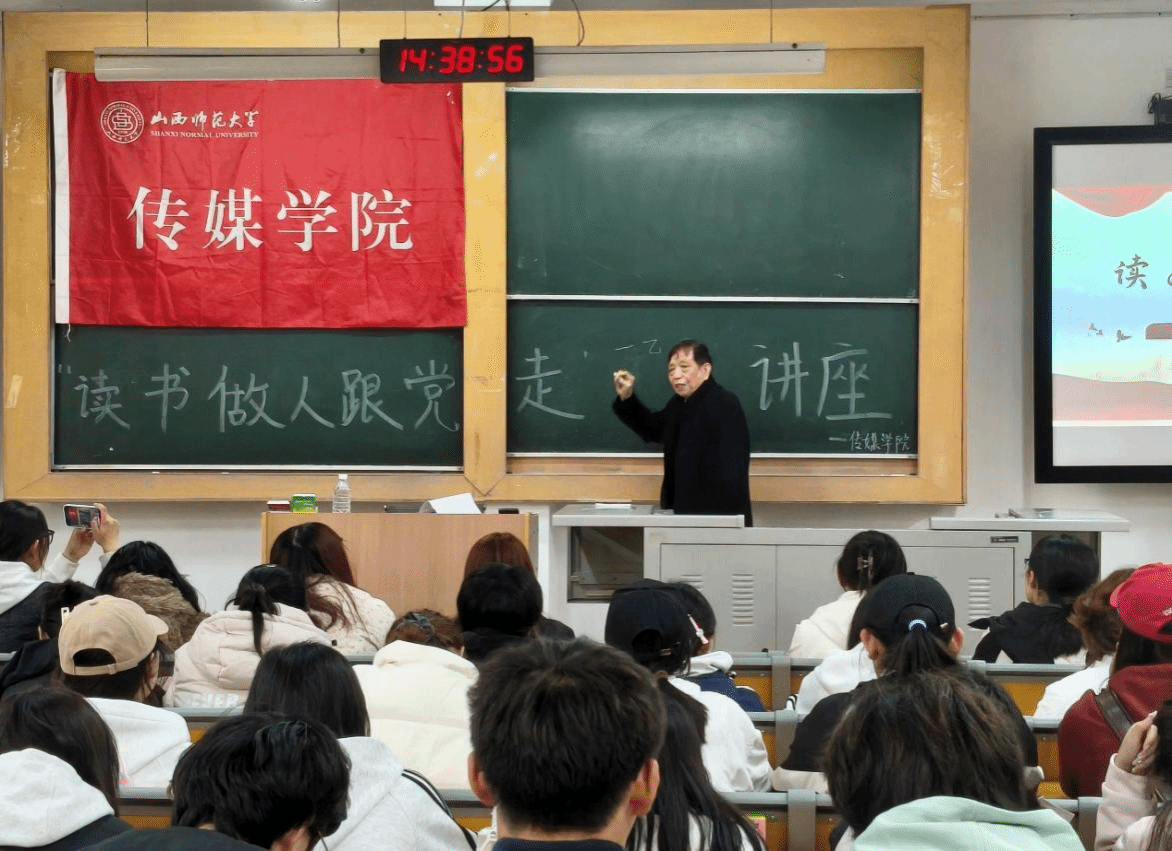 李振中老师以读书铸就根基,做人涵养品格,跟党坚定方向为主线,系统阐释了三者相融相生的深刻内涵。在论述读书之道时,李振中老师提出勤以治学、专以精进、恒以持久、思以明辨四维要义,为同学们指明了读书的重要性、必要性以及“志、识、恒”三大要素接着,李振中老师强调应当将个人理想融入民族复兴的伟大征程,以党的旗帜为指引,才能在时代洪流中找准人生坐标,实现生命价值同时,李振中老师勉励同学们发扬钉子精神,在专业领域追求深、精、通、坚的卓越境界,以腹有诗书气自华的涵养与担当,肩负起传播真理、弘扬正义的媒体责任。